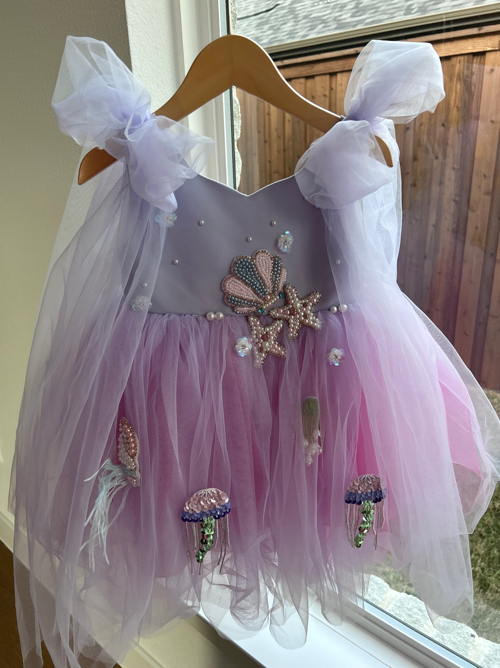 Sea Princess Tulle Dress with Shell Accents and Detachable Bow