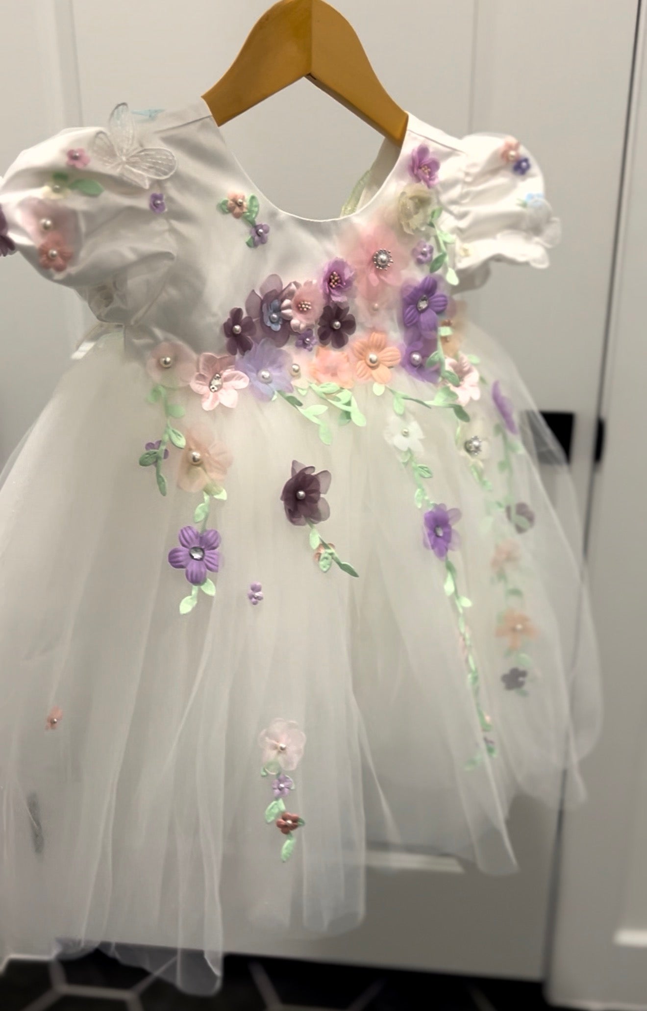 White 3D Floral Dress with Butterfly Wings – Kids Dress with Cotton Lining